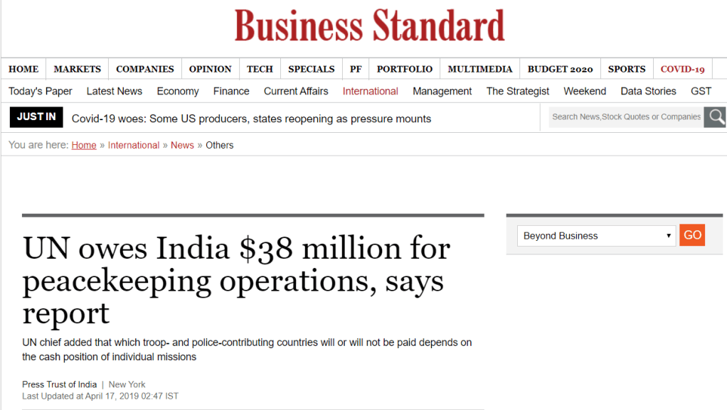 The countries whose troops are deployed in areas of conflict as peacekeeping forces are paid money for the assistance provided. The United Nations owes $2 billion to member nations for providing troops for peacekeeping forces. The largest chunk of this debt, an amount of $38 million is owed to India. Despite being the biggest contributors to the Security Council, India does not find a permanent seat at the high table. The G-4 nations of Brazil, Germany, India and Japan have been advocating for reforms of the Security Council. An important one being an increase in the number of permanent seats reflecting the changing global political order.